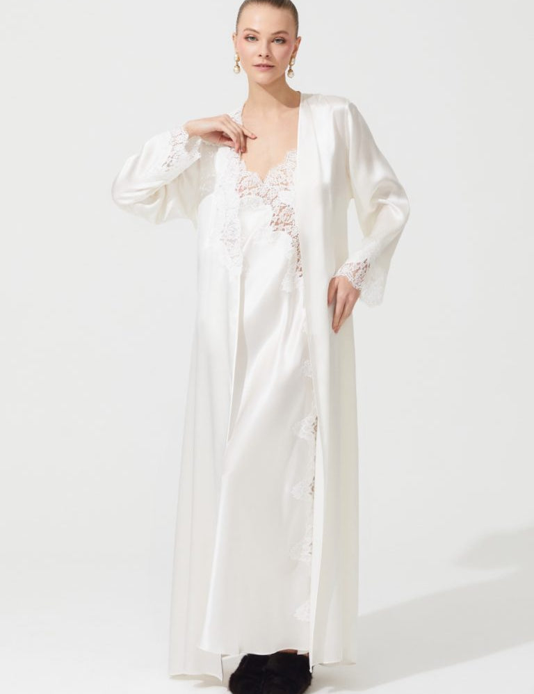 DIAMOND SILK LONG ROBE ECRU