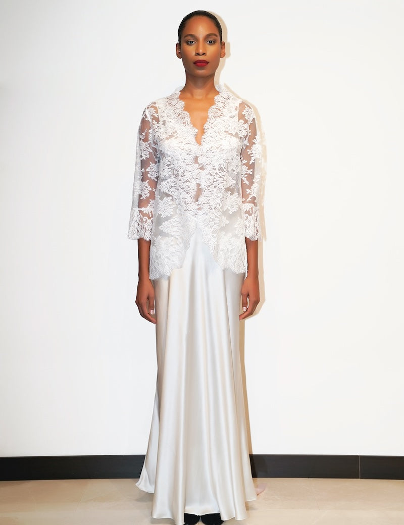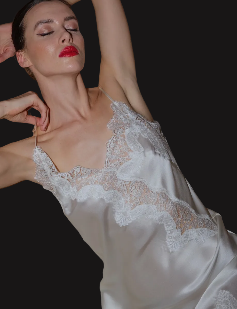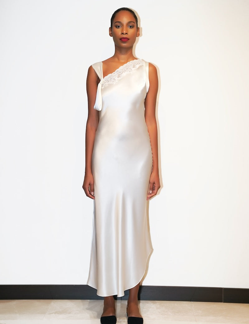 DIAMOND SILK LONG CHEMISE ECRU