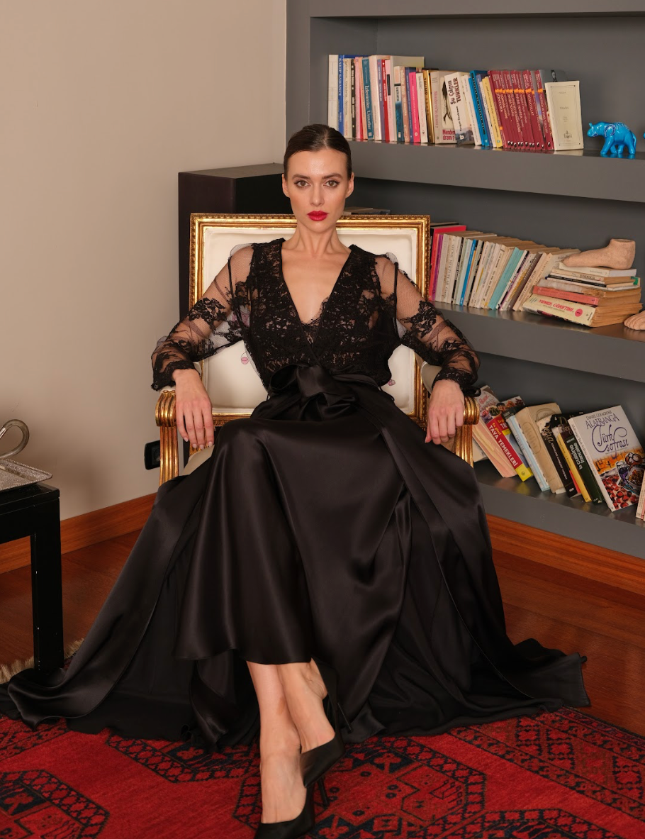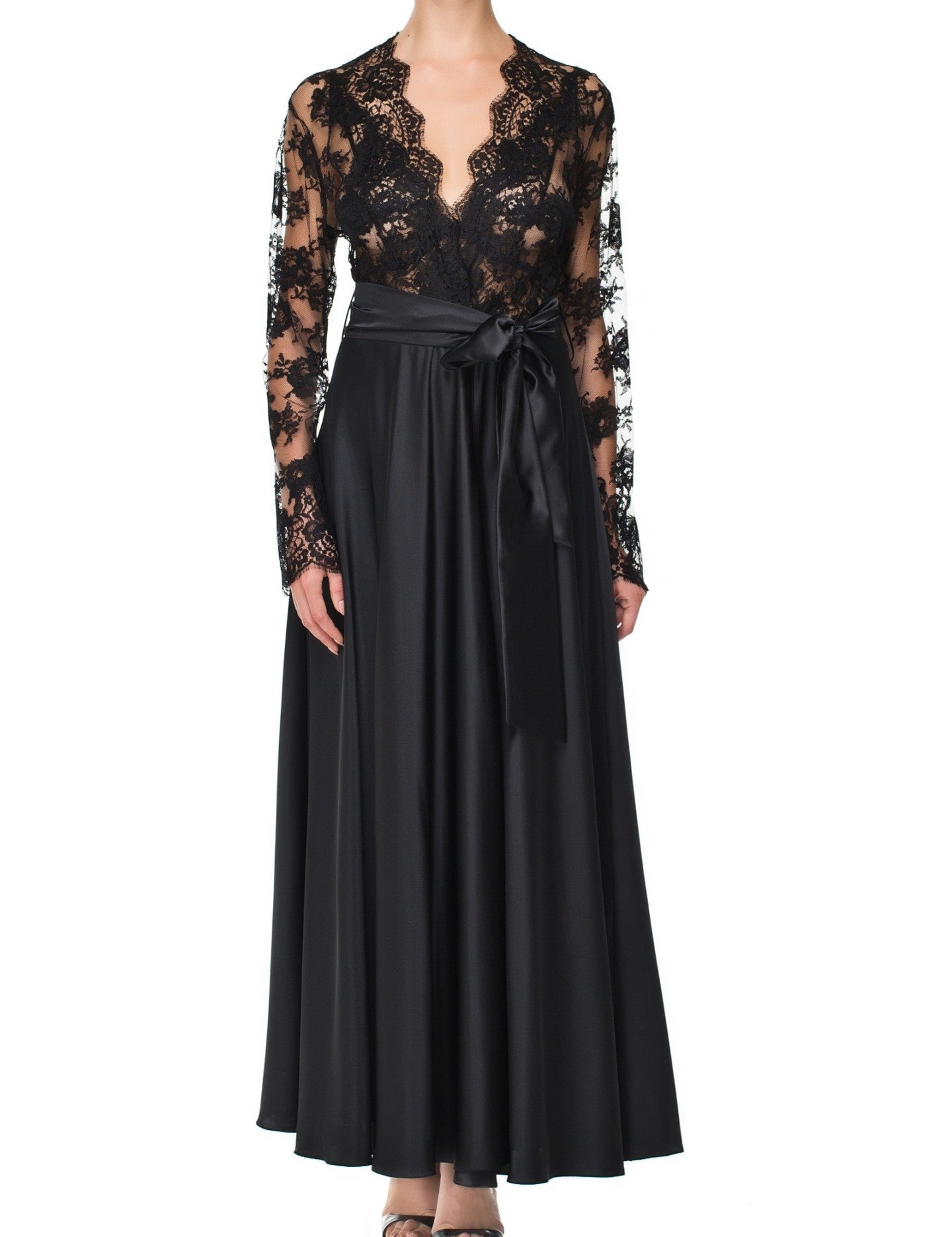 VAMPY SILK LACE EMBROIDERED LONG ROBE