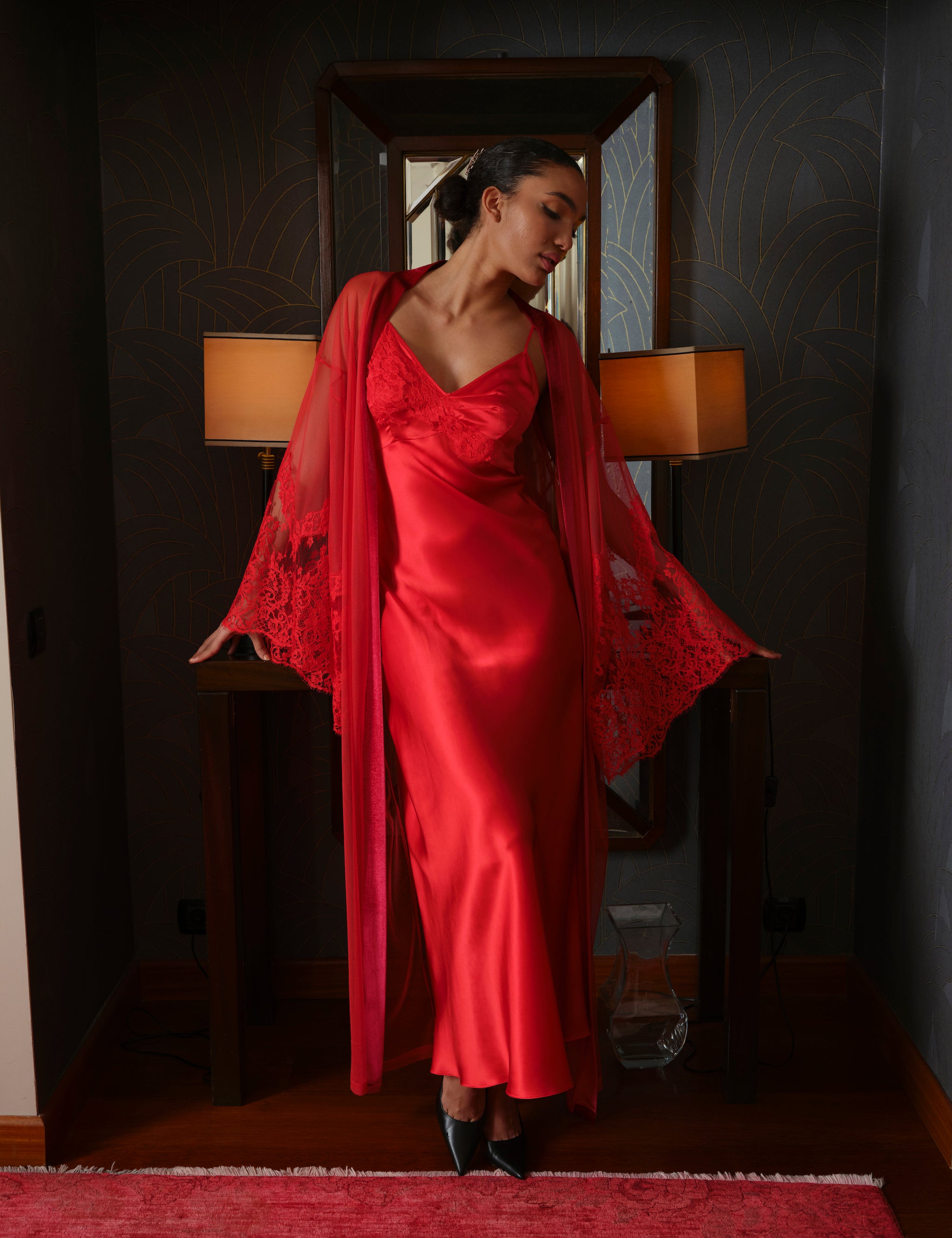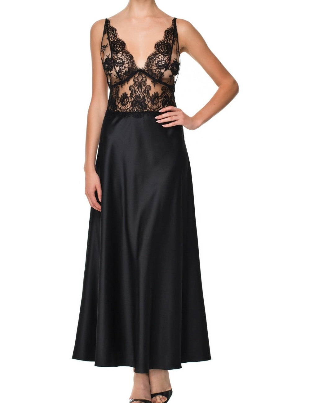 VAMPY SILK LACE EMBROIDERED LONG CHEMISE