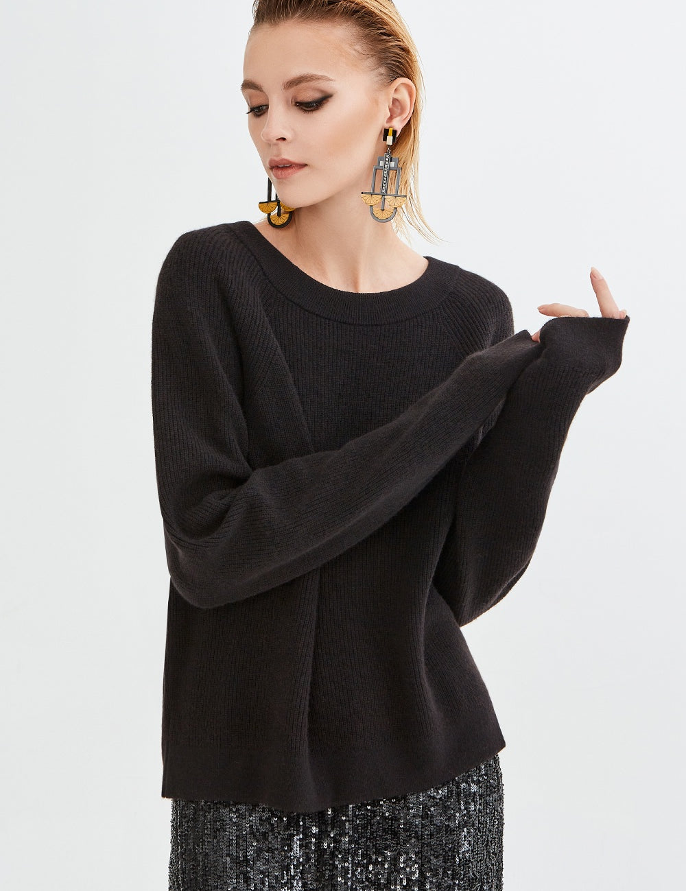 HEART BREAK REGLON SLEEVE SWEATER BLACK